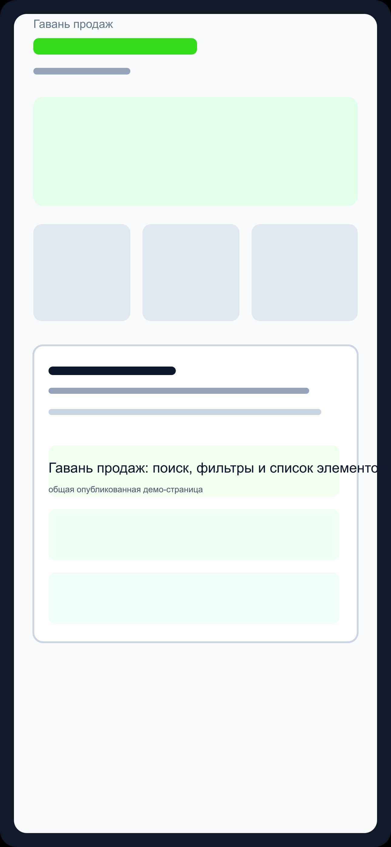 Гавань продаж показывает учебный интерфейс для категории «Финансы» и подходит для каталога, поиска, карточек, фильтров и авторизации.
