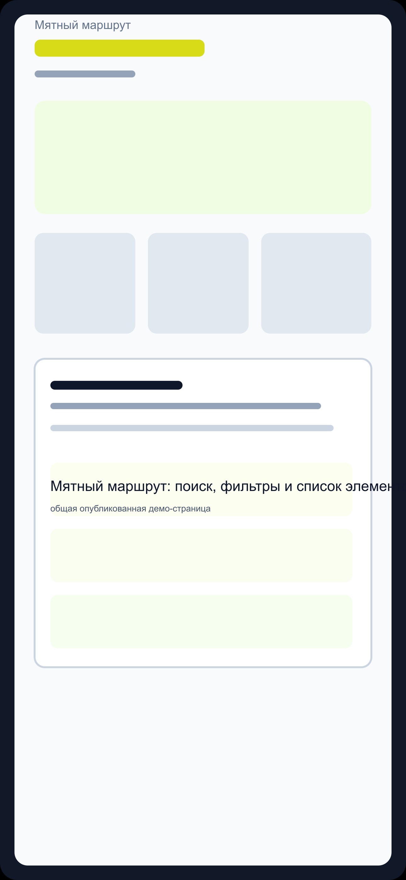 Мятный маршрут показывает учебный интерфейс для категории «Образ жизни» и подходит для каталога, поиска, карточек, фильтров и авторизации.
